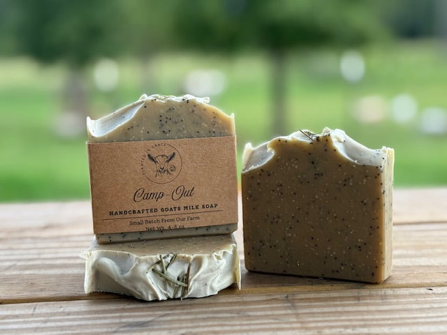 This bar reminds me of camping because it has a citronella smell to it. There is added poppy seeds for grit. Scented with Lavender, Eucalyptus Lemon, Bergamot and Rosemary essential oils.