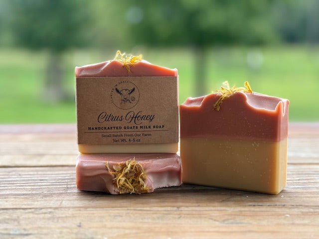 This sweet-smelling soap scented with Lemongrass and Orange essential oils has a beautiful lather and reminds me of walking through citrus orchards.