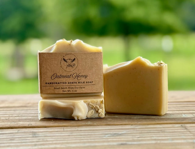 Saponified Oils of Olive, Coconut, Grapeseed and Castor, Shea Butter, Tallow, Distilled Water, Goats Milk, Sodium Hydroxide, Sodium Lactate, Colloidal Oatmeal and Honey