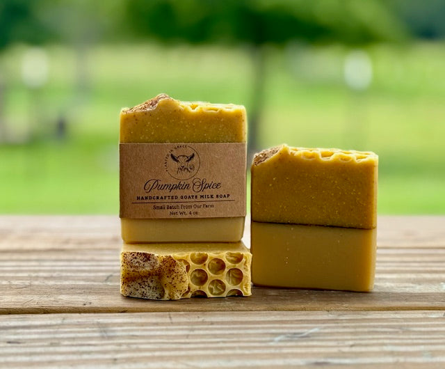 Saponified Oils of Olive, Coconut and Castor, Shea Butter, Cocoa Butter, Sodium Hydroxide, Sodium Lactate, Distilled Water, Goats Milk, Clove and Cinnamon Leaf Essential oils, Ground Cinnamon, Pumpkin and Honey